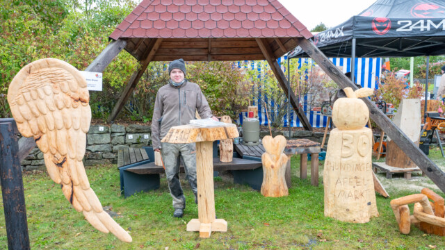 Petrus meinte es heuer nicht besonders gut mit den Hundingern. Der von den Hundinger Goldbergbauern und der Gemeinde veranstaltete, weit über die Landkreisgrenzen hinaus bekannte Apfelmarkt, war heuer größtenteils verregnet. Kein Wunder, dass die Besucherzahl zurückblieb. Viele Besucher ließen sich aber von den widrigen Witterungsverhältnissen nicht abhalten. Ihnen wurde auch viel geboten. Trotz der durchwachsenen Apfelernte gab es verschiedene Sorten aus heimischen Streuobstbeständen. Auch das übrige Angebot der Standler war reichhaltig. So gab es u.a. Marmeladen, Kürbisse, Nüsse, Dinkelprodukte, Kartoffeln, Wurstwaren, Käse, Chips, verschiedene Süßigkeiten, selbstgemachte Kuchen, Schokobananen und Torten, Kraut, Kerzen, Honig, Obstbrände und Korbwaren. Verköstigen konnten sich die Besucher beim Goldbergwirt und bei der Feuerwehr. Für Kaffee und Kuchen sorgte der Bienenzuchtverein. Am Stand der Dorfgemeinschaft Sondorf gab es außer dem traditionellen Dinkelbier die Möglichkeit sich mit Apfelglühmost aufzuwärmen.