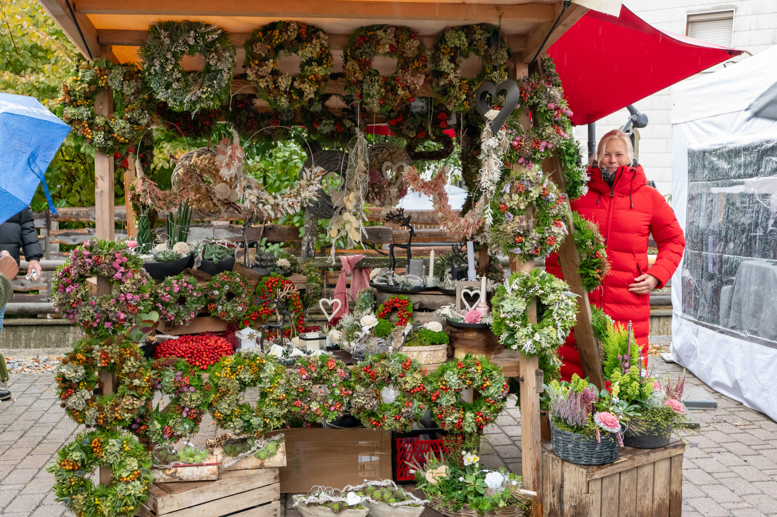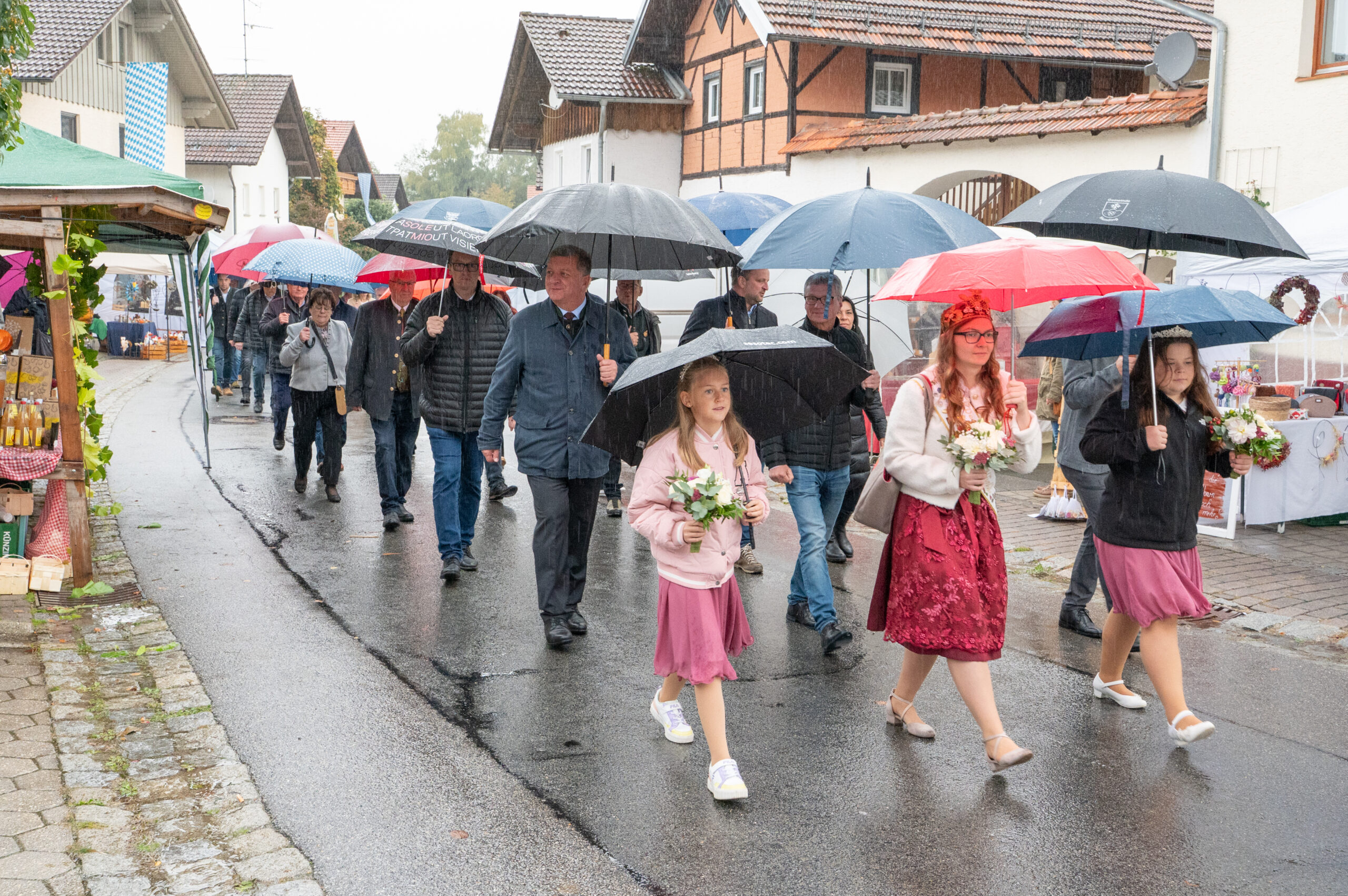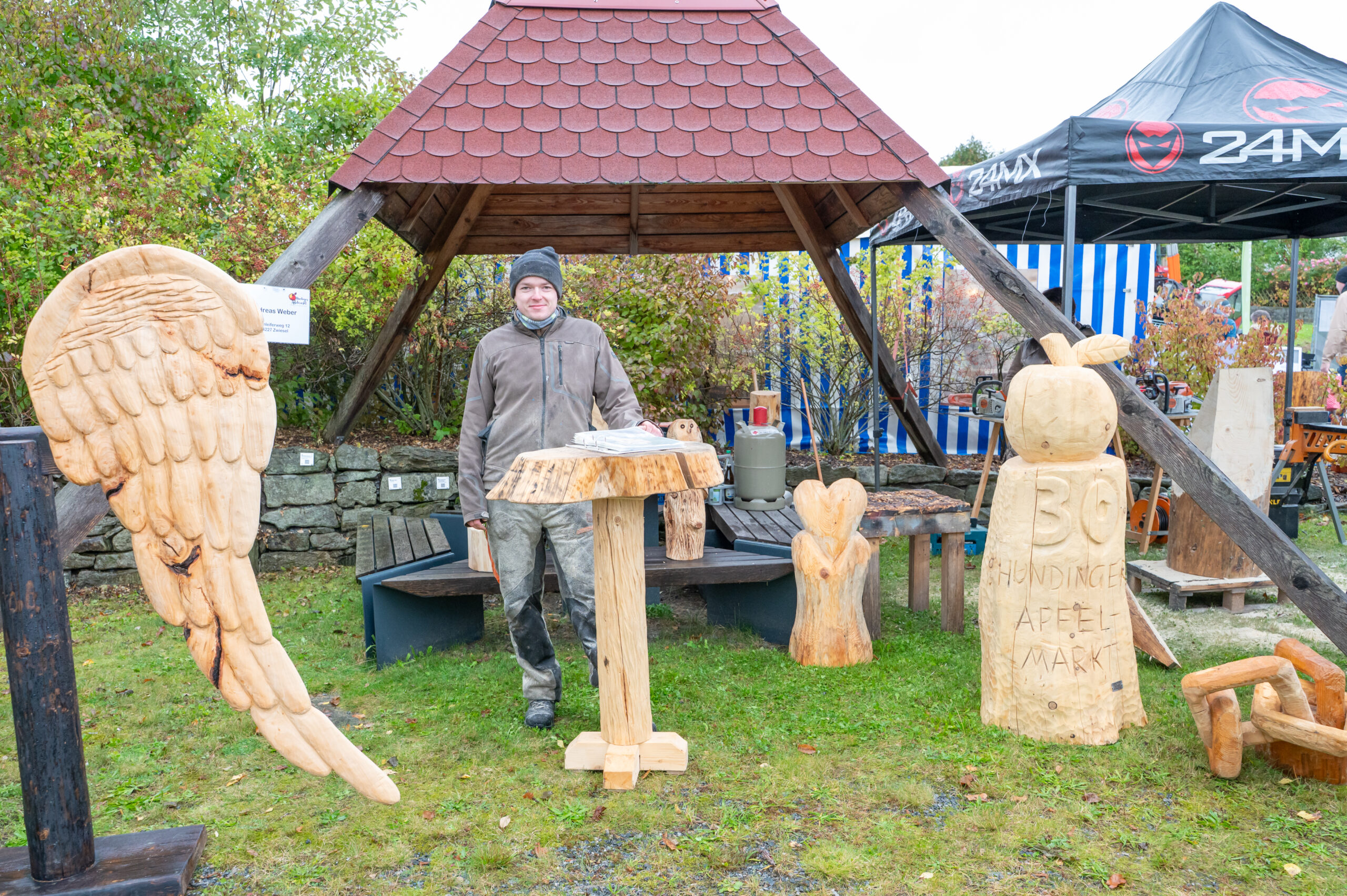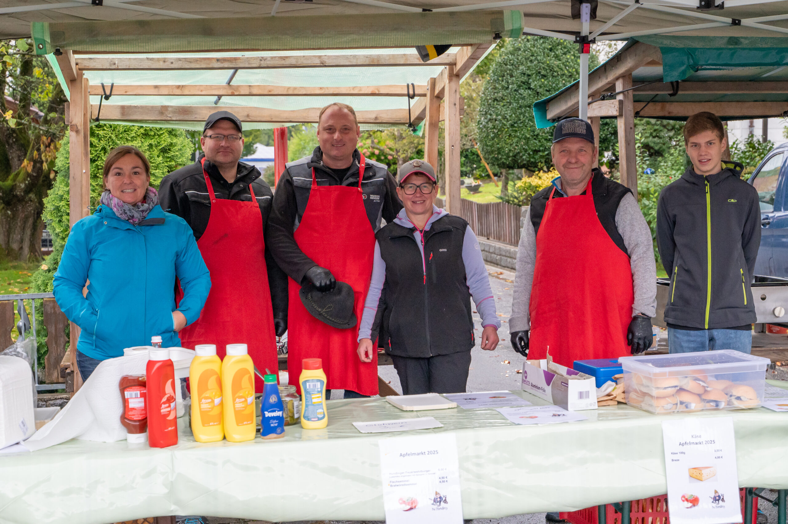 Petrus meinte es heuer nicht besonders gut mit den Hundingern. Der von den Hundinger Goldbergbauern und der Gemeinde veranstaltete, weit über die Landkreisgrenzen hinaus bekannte Apfelmarkt, war heuer größtenteils verregnet. Kein Wunder, dass die Besucherzahl zurückblieb. Viele Besucher ließen sich aber von den widrigen Witterungsverhältnissen nicht abhalten. Ihnen wurde auch viel geboten. Trotz der durchwachsenen Apfelernte gab es verschiedene Sorten aus heimischen Streuobstbeständen. Auch das übrige Angebot der Standler war reichhaltig. So gab es u.a. Marmeladen, Kürbisse, Nüsse, Dinkelprodukte, Kartoffeln, Wurstwaren, Käse, Chips, verschiedene Süßigkeiten, selbstgemachte Kuchen, Schokobananen und Torten, Kraut, Kerzen, Honig, Obstbrände und Korbwaren. Verköstigen konnten sich die Besucher beim Goldbergwirt und bei der Feuerwehr. Für Kaffee und Kuchen sorgte der Bienenzuchtverein. Am Stand der Dorfgemeinschaft Sondorf gab es außer dem traditionellen Dinkelbier die Möglichkeit sich mit Apfelglühmost aufzuwärmen.